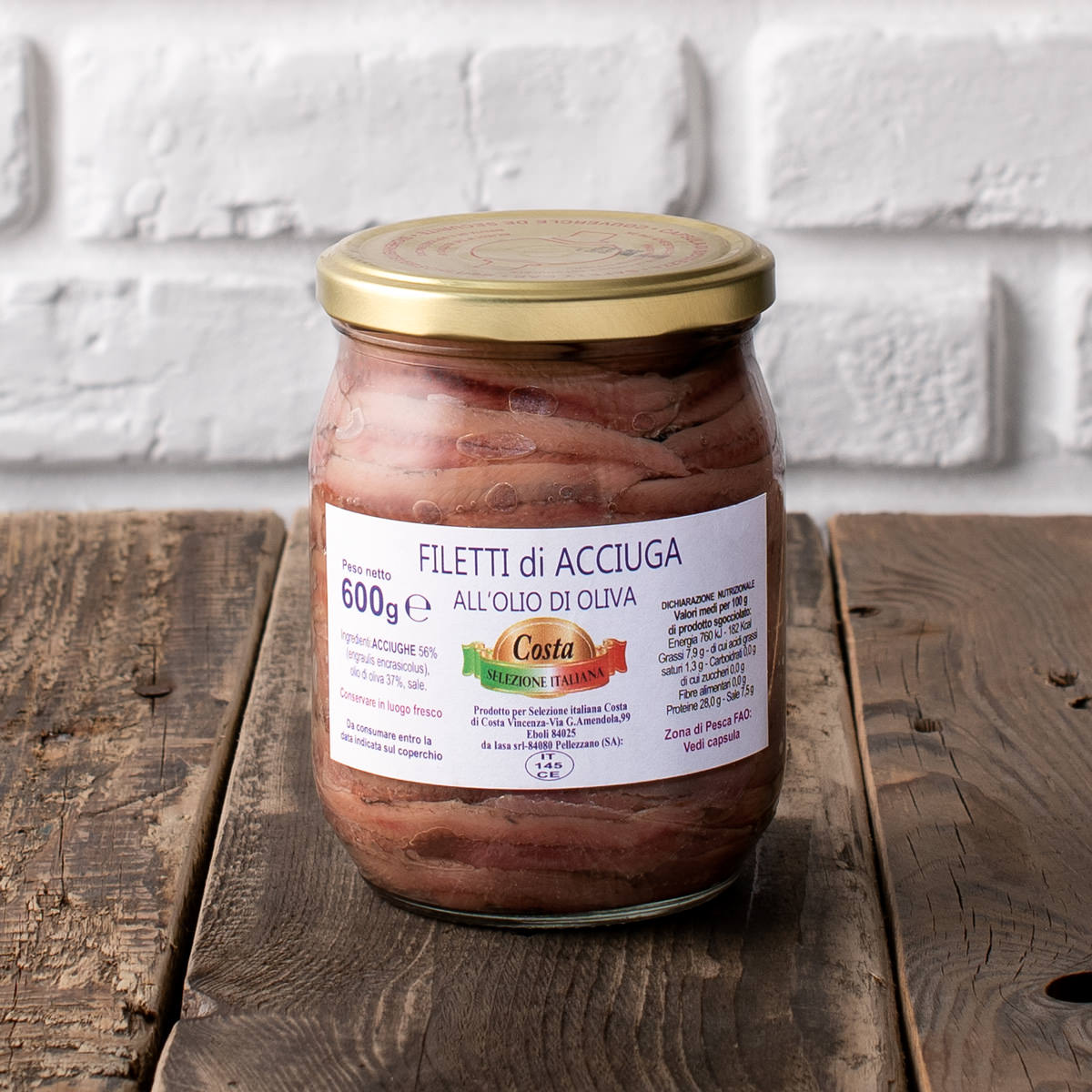 Filets d’anchois (60%), huile d’olive (40%), sel